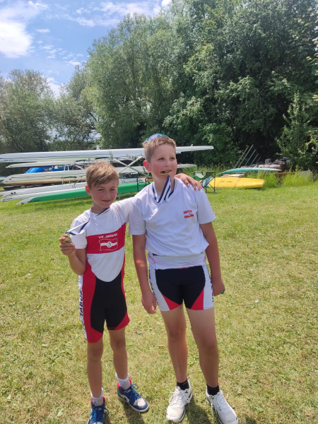 A nakonec konečně kluci - mladší žáci, 11 let. Vítěze této kategorie Petra Hlaváčka ohrožoval jen další borec VKJ, druhý v pořadí Lukáš Váňa. Podle individuálních výsledků je jasné, že když zapracují i na dvojskifu, tak by mohli pomýšlet vysoko :).