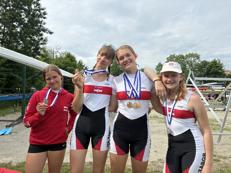 Žactvo: Děvčata čtrnáctiletá Denisa Dušáková a Nikola Ševčíková vezou stříbro za dvojskif, Denisa pak i za skif. O rok mladší Cilka Volfová s Natálkou Mázikovou mají stříbro - stejně jako jejich starší vzory za dvojskif. Na skifech pak kopírují dorostence. Natálka ve FA pátá, Cilka dojela ve FB s přehledem na místě prvním. Titul oblastní přebornice má po zásluze také mladší žačka Radka Rypáčková!